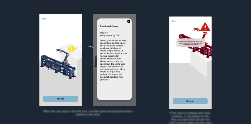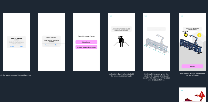 Initial storyboard and flow exploration defining the AR placement path, controls, and core interactions.